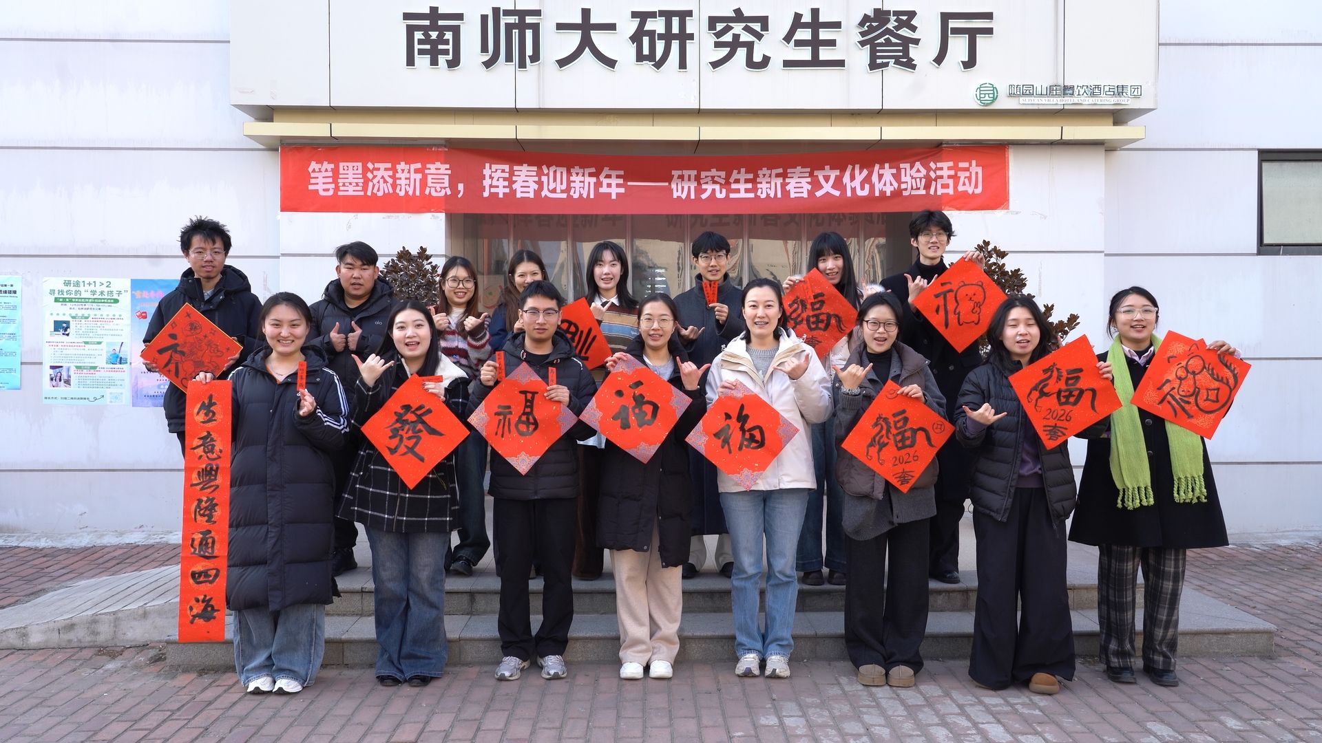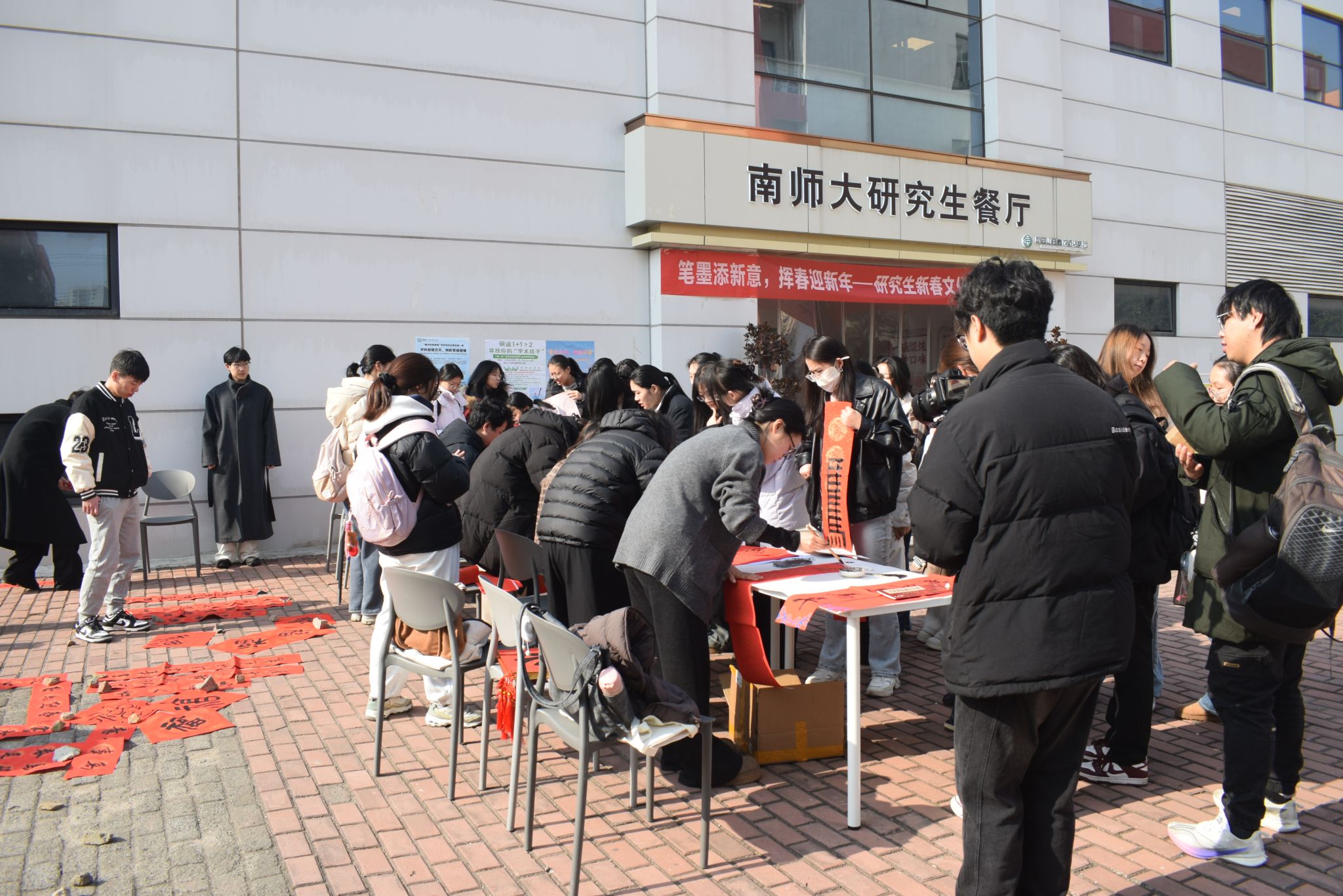 2025年12月29日,南京师范大学仙林湖研究生公寓食堂门前暖意融融、墨香弥漫,“笔墨添新意”迎新年文化体验活动温情启幕。本次活动由研究生院(研工部)、后勤管理处(仙林湖学生公寓管理工作专班)与美术学院联合主办,美术学院研究生会承办,吸引了众多师生驻足参与,在辞旧迎新之际共沐中华优秀传统文化的浓厚底蕴与独特魅力。