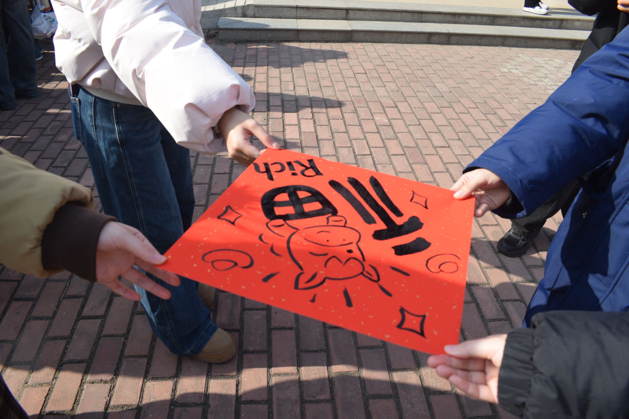 作品展示区成为师生交流分享的暖心阵地。大家纷纷展示亲手创作的春联、福字与剪纸,相互赠予、合影留念,把饱含心意的新春祝福传递给身边师友,真挚情谊与浓浓年味交织相融,定格下温馨美好的迎新瞬间。